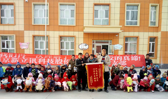 中共南京新立訊科技股份有限公司黨支部從2017年12月22日起舉行大型愛心捐獻(xiàn)活動,公司各部門員工積極參與、奉獻(xiàn)愛心。新疆和田市皮縣闊向買里村新建一座幼兒園,地處偏遠(yuǎn),玩具購買不便,幼兒園成立后一直沒有玩具,幼兒午休棉被短缺。