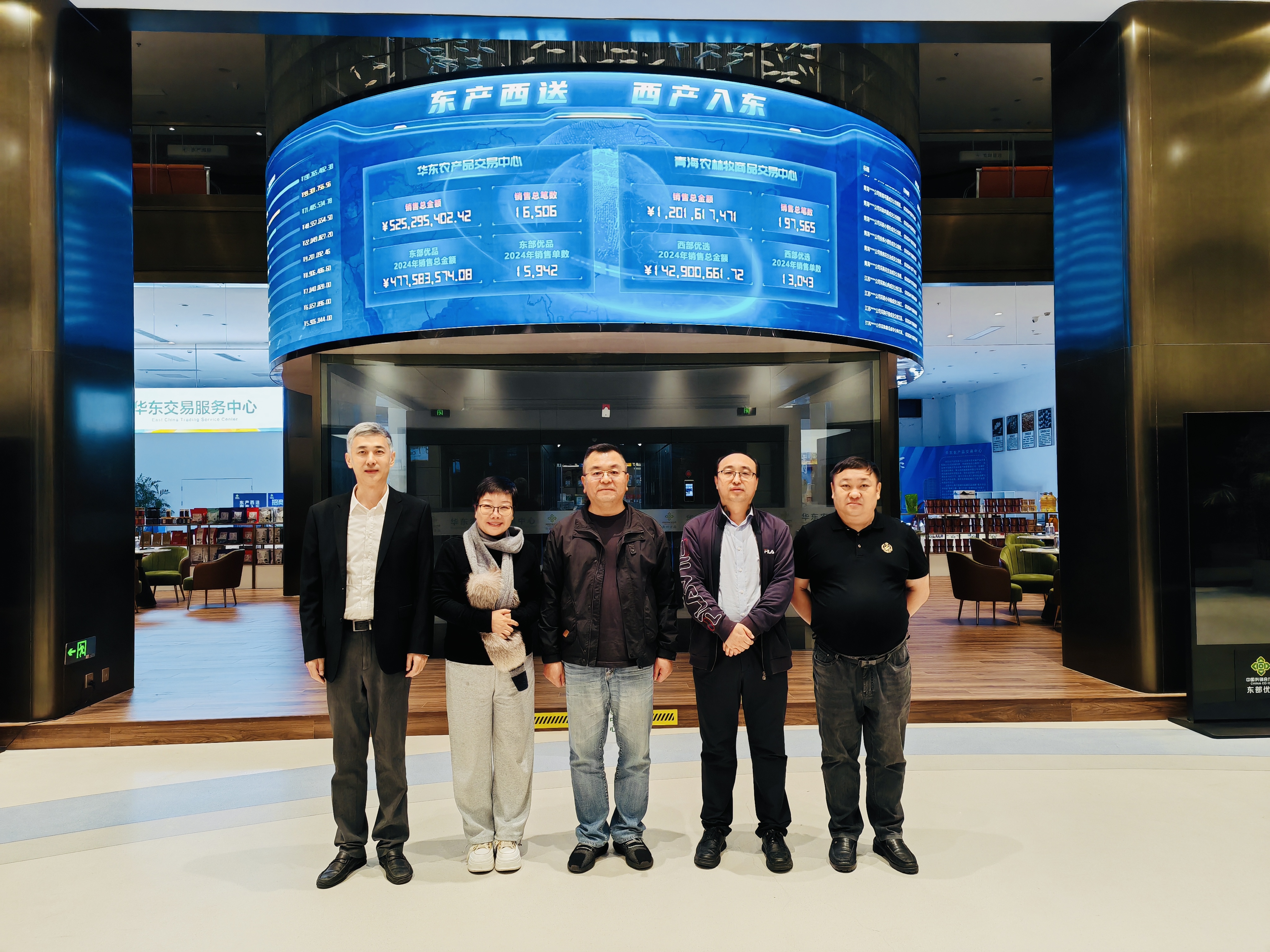 簽約儀式后,新立訊科技集團董事長(兼青海、華東、川藏交易中心董事長)毛霖,與各單位出席簽約代表共同參觀華東農產品交易中心。