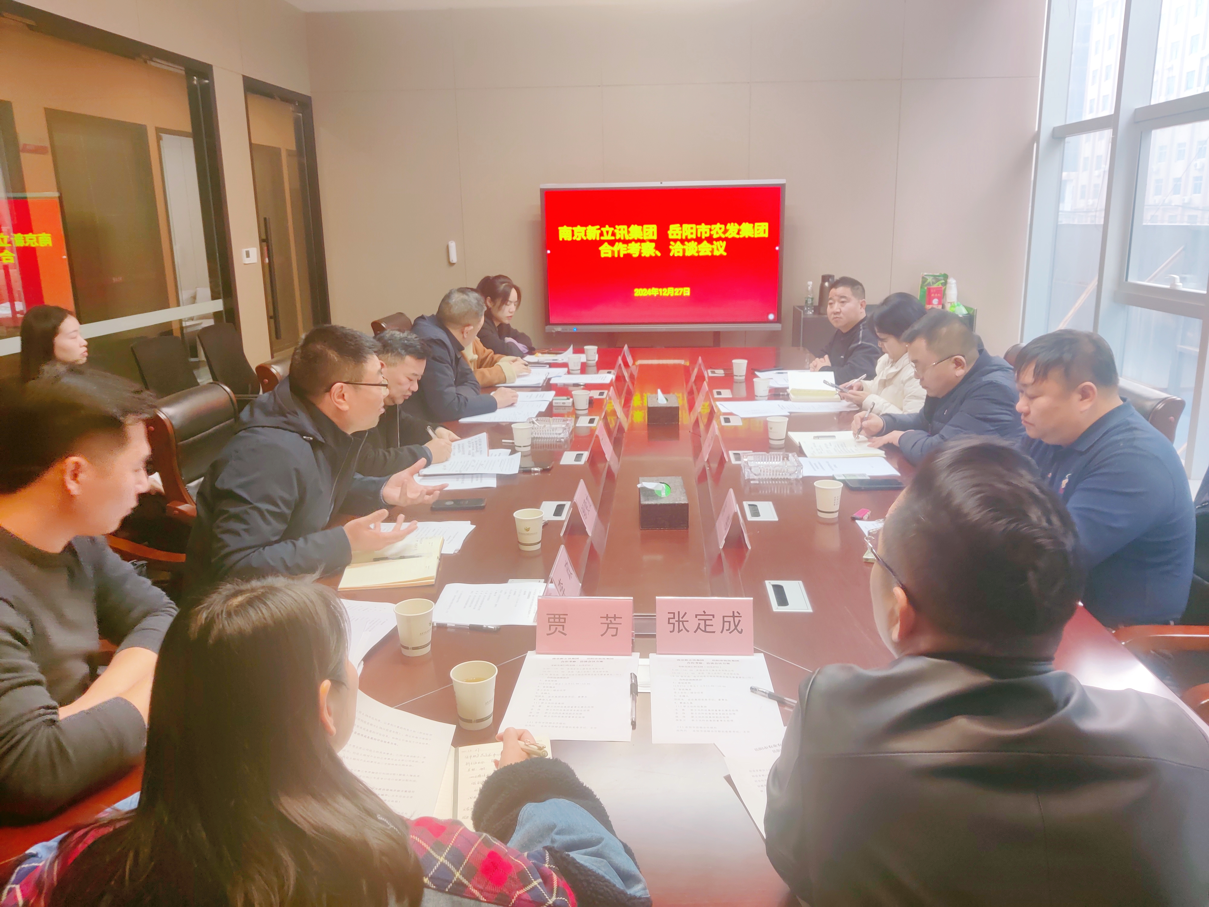 2024年12月27日,新立訊科技集團董事長毛霖,常務副總經理李偉,副總經理陳偉等一行赴岳陽農發集團進行考察調研。岳陽農發集團黨委書記、董事長鄒國良等會見毛霖一行并舉行座談。岳陽市供銷合作聯社黨委書記、主任向風行、副主任鄒變龍等參加座談。