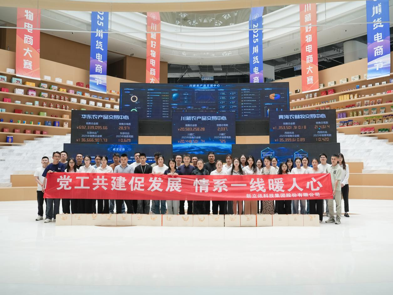 在喜迎中國共產黨成立104周年之際,新立訊科技集團黨支部聯合工會于2025年6月27日開展"黨工共建促發展 情系一線暖人心"主題慰問活動。公司黨員代表及工會主席王宗蘭前往川藏農產品交易中心,為協辦四川省“2025川貨電商節”川藏好物電商大賽堅守崗位的一線員工送去慰問品和深切關懷。