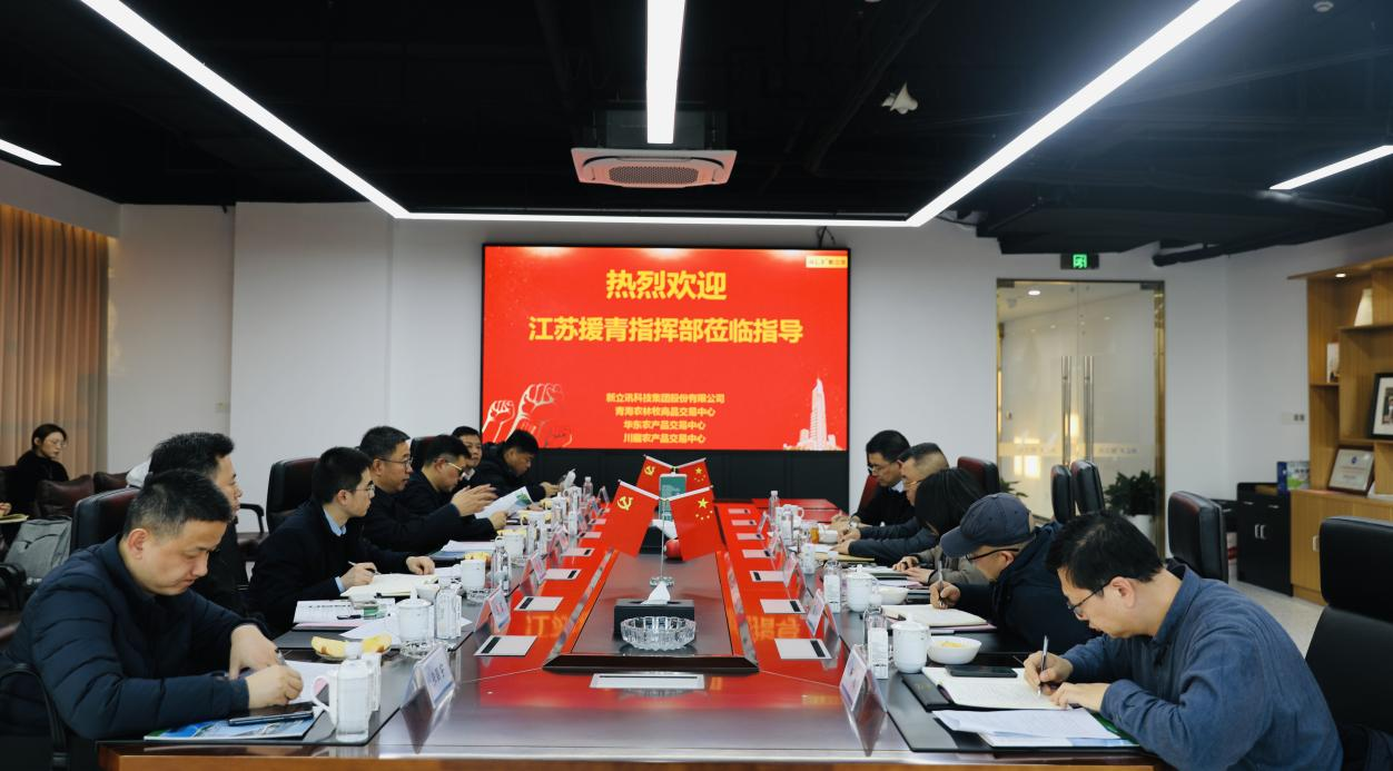 為持續深化落實蘇青兩省省長調研青海農林牧商品交易中心時指示精神,2026年1月21日,江蘇省對口幫扶青海省前方黨委書記、江蘇省對口支援青海省海南州前方指揮部總指揮、省對口幫扶青海省工作隊領隊,青海省政府副秘書長、海南州副書記、副州長戴敏捷,江蘇省對口幫扶青海省前方黨委副書記、江蘇省對口幫扶青海省工作隊副領隊,青海省農業農村廳黨組成員李明等調研新立訊科技集團總部。新立訊科技集團董事長(兼青海、華東、川藏農產品交易中心董事長)毛霖、常務副總經理李偉及農產業互聯網團隊陪同調研并座談。