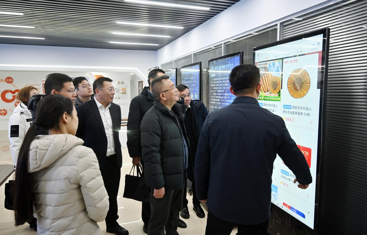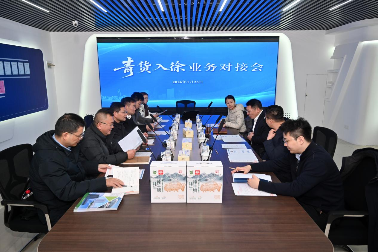 2026年1月26日,為持續深化落實蘇青兩省省長調研青海農林牧商品交易中心時指示精神,在江蘇援青工作隊及徐州工作組協調下,徐州市港務區管委會副主任、海南州興??h副書記、副縣長杜昆鵬,新立訊科技集團董事長(兼青海交易中心董事長)毛霖,海南州興??h發改工信局副局長李東陽,董事長助理(兼青海交易中心副總經理)楊慶慶,電商總監李積鑫等赴徐州報業傳媒集團調研會商,與徐州報業傳媒集團黨委書記、社長盧波,徐州報業傳媒集團黨委委員、副總編輯蔣昌一,徐州優品購電子商務有限公司副總經理趙培、房之翔開展“青貨入徐”專項業務對接會。