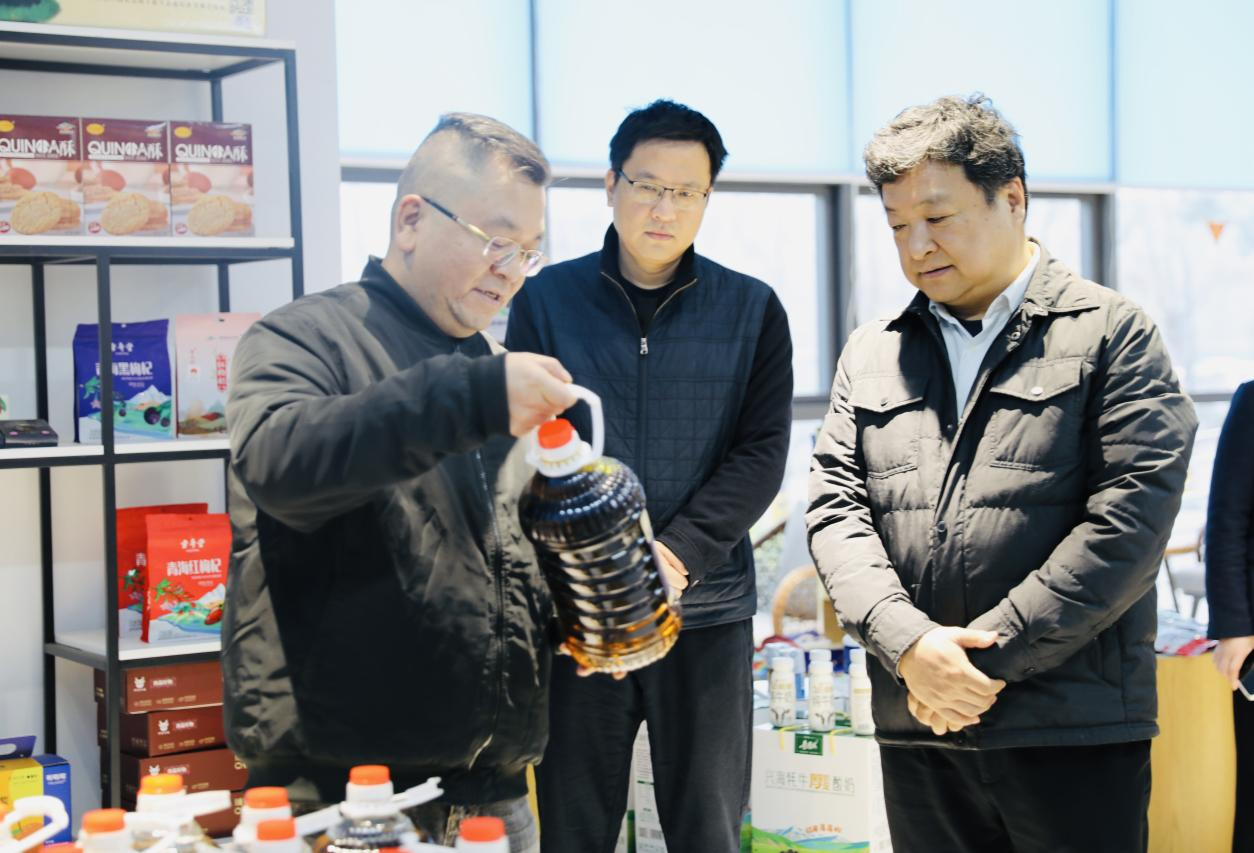 座談前,大家參觀了位于新立訊總部一層正在籌建的“東西部(蘇青)協(xié)作農(nóng)產(chǎn)品展銷中心”,集中展示青海“青品好物+西部優(yōu)選”系列產(chǎn)品:藍雀山、羊羔花、牦牛肉、藏羊肉、湟魚菜籽油、雪山牦牛奶、青海湖純牛奶、冬蟲夏草、沙棘等高原特色農(nóng)產(chǎn)。