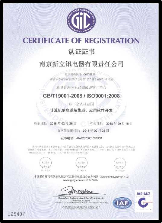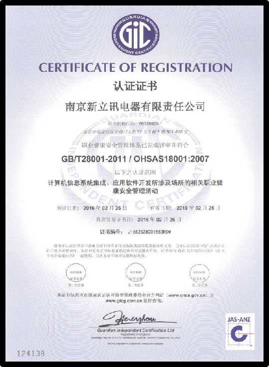 2016年2月28日,經(jīng)過嚴格有序的認證審核,審核組專家就南京新立訊電器有限責任公司體系運行現(xiàn)狀的具體情況進行總結,并給予了客觀的評價。專家組表示,新立訊 ISO三大管理體系運行狀況良好,符合體系認證的要求。經(jīng)過專家組的認定和審核,南京新立訊電器有限責任公司順利通過了ISO9001質量管理體系、ISO14001環(huán)境管理體系、OHSAS18001職業(yè)健康安全管理體系認證,獲得了相關證書。此次三大管理體系的認證,標志著新立訊企業(yè)質量管理水平和管理理念的不斷提升,為企業(yè)向社會提供優(yōu)質的產品和服務提供了強有力的保障。