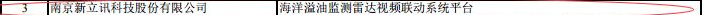 2017年6月22日,經(jīng)過區(qū)(開發(fā)區(qū))推薦、主管部門審核和專家評審等程序,南京新立訊科技股份有限公司-----“海洋溢油監(jiān)測雷達(dá)視頻聯(lián)動系統(tǒng)平臺項目”榮獲南京市軟件和信息服務(wù)業(yè)發(fā)展專項資金。該平臺通過擴(kuò)展和集成海域望遠(yuǎn)高清視頻監(jiān)控、多用途微波雷達(dá)、AIS、電子海圖系統(tǒng)、海洋浮標(biāo)、衛(wèi)星遙感等多種監(jiān)視監(jiān)測手段和信息采集方式構(gòu)成海域綜合立體多維感知監(jiān)視監(jiān)測大系統(tǒng),形成綜合性多系統(tǒng)智能信息融合。同時,該專項資金的獲得既是對新立訊在“藍(lán)色海洋”領(lǐng)域深度拓展的充分肯定,也激勵新立訊進(jìn)一步增強(qiáng)該平臺在海上能源領(lǐng)域的應(yīng)用效能。