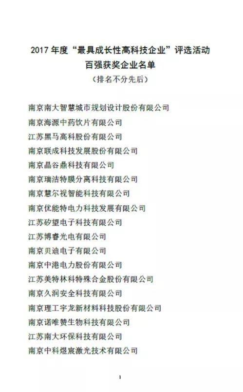 2017年12月1日,公布了2017年度江蘇省最具成長性高科技企業100家名單,南京新立訊科技股份有限公司等一批優秀的科技型企業榮獲2017年度江蘇省“最具成長性高科技企業”稱號。