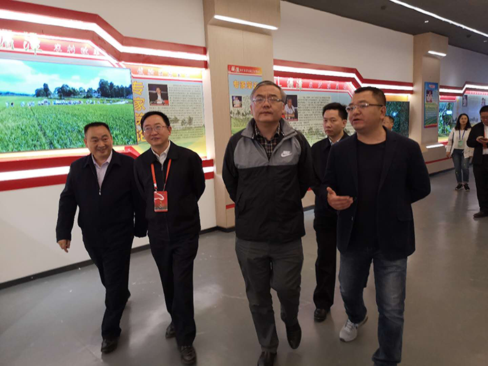 2018年510日,貴州省人大常委會副主任何力(原貴州省人民政府副省長)、省政法委常務副書記李宏亞、省林業廳廳長黎平等領導一行隨同扶貧觀摩團蒞臨貴州遵義茶葉交易中心,開展扶貧工作指導交流。遵義市政協副主席湄潭縣委書記魏在平,新立訊董事長毛霖等陪同領導一行參觀貴州遵義茶葉交易中心,并就貴州遵義茶葉交易中心的交易功能與茶產業扶貧計劃作詳細匯報。