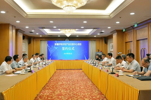 2021年6月2日,新立訊股份與伊寧市人民政府在江蘇南京西康賓館隆重舉行簽約儀式,雙方就新疆伊犁農牧產品交易中心項目現場簽約。伊犁州黨委副書記、自治州代州長哈丹·卡賓,伊犁州黨委副書記、江蘇援伊前方指揮部黨委書記、總指揮朱斌,伊犁州黨委常委、州紀委書記、監委主任丁邦文,伊寧市委副書記、市長卡米力江·玉蘇甫江,中國(南京)軟件谷管委會主任孫中華與江蘇省、南京援疆工作組、南京市發改委等相關領導,新立訊董事長毛霖及公司高管余治、李偉、陳凱等共同出席簽約儀式。伊寧市委副書記、南京援疆工作組組長鄭曉明主持。