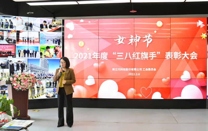為豐富新立訊女職工的文化生活,表彰先進(jìn),增強(qiáng)公司凝聚力,在第112個(gè)“三八”國際勞動(dòng)?jì)D女節(jié)來臨之際,新立訊黨支部及工會(huì)委員會(huì)在總部隆重召開三八國際婦女節(jié)表彰大會(huì),大會(huì)由新立訊監(jiān)事會(huì)主席、工會(huì)主席王宗蘭主持。